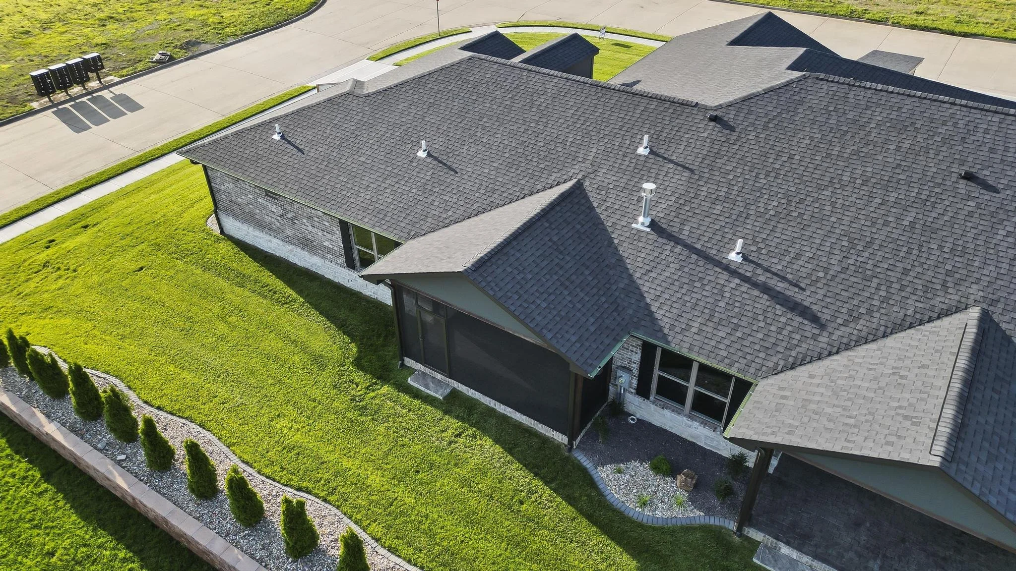 Maintenance-free includes grass cutting, lawn fertilizing, landscaping, tree trimming, irrigation, and driveway snow removal.
